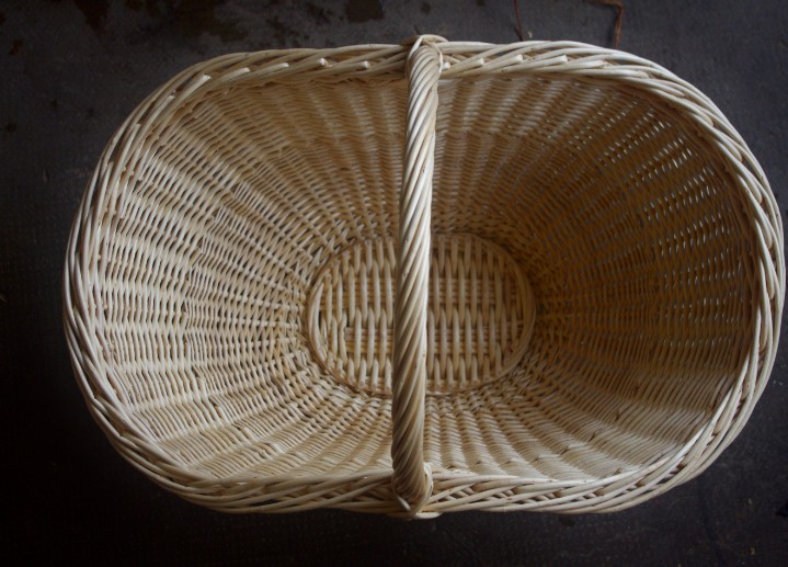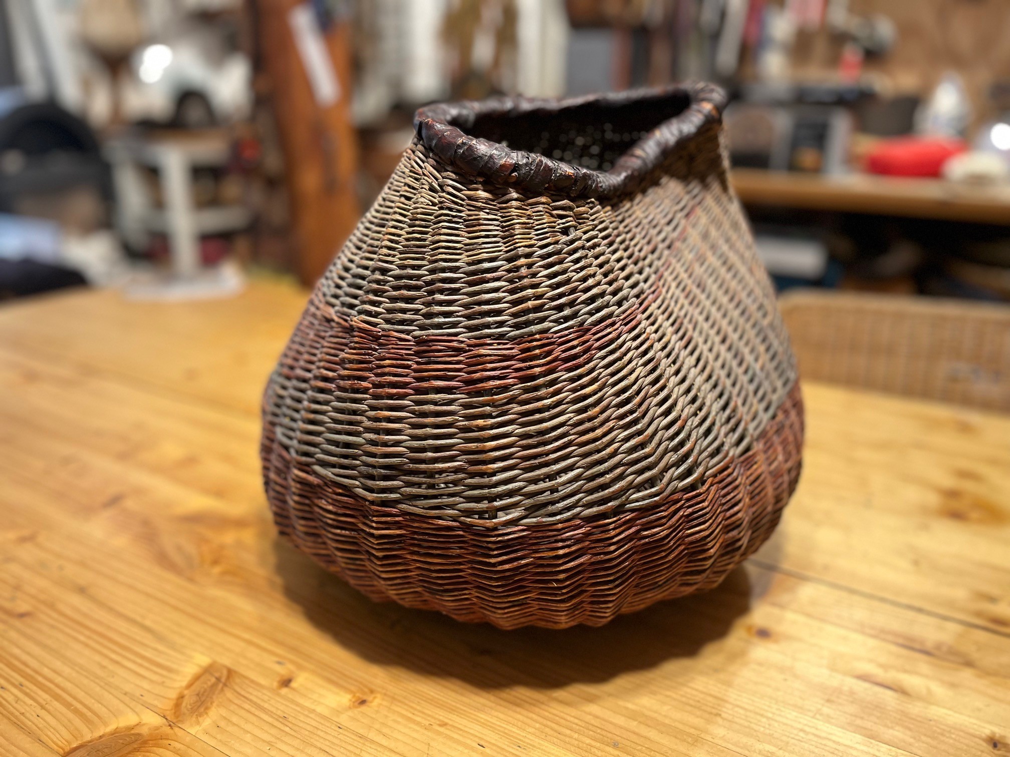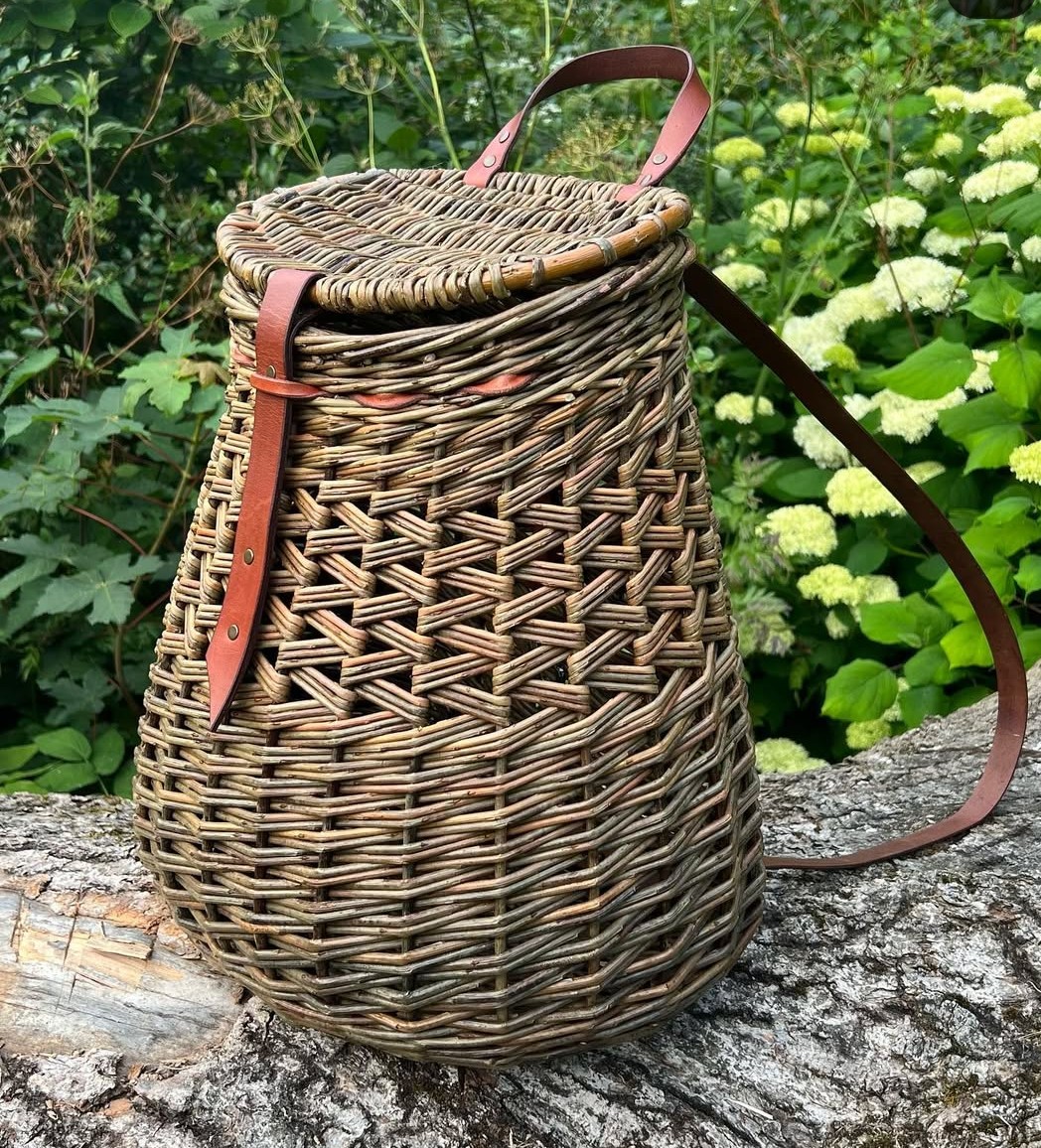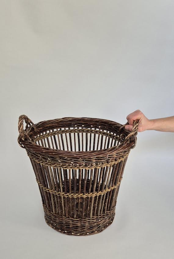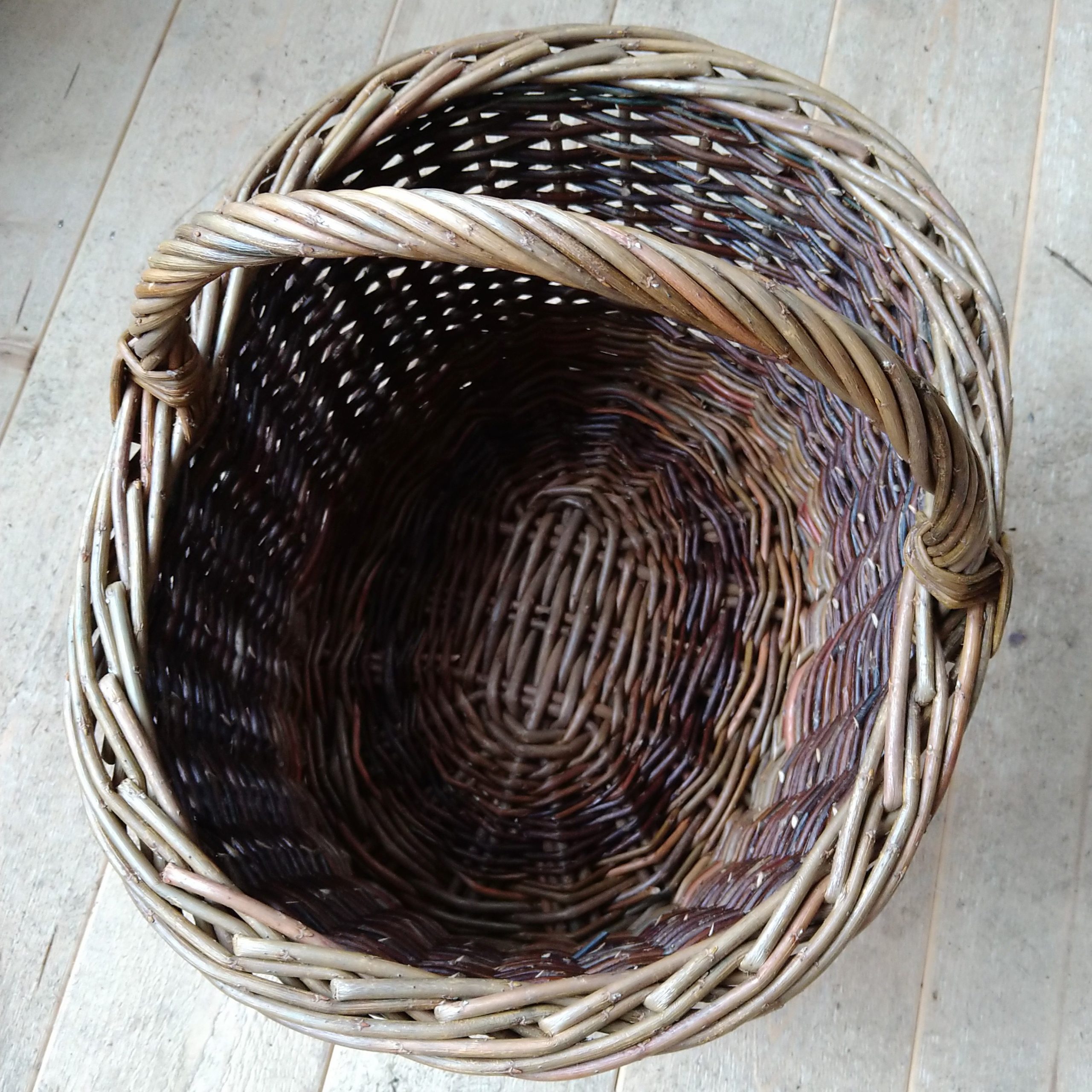 'When I began basketry I only made the oval scallom stakes shallow and large baskets, and very soon I realized that people were also expecting a narrow and high version of it, with a lengthwise handle, that's how I came to it. These baskets are made using English randing and slewing techniques, my favourite ways to rand a basket.'