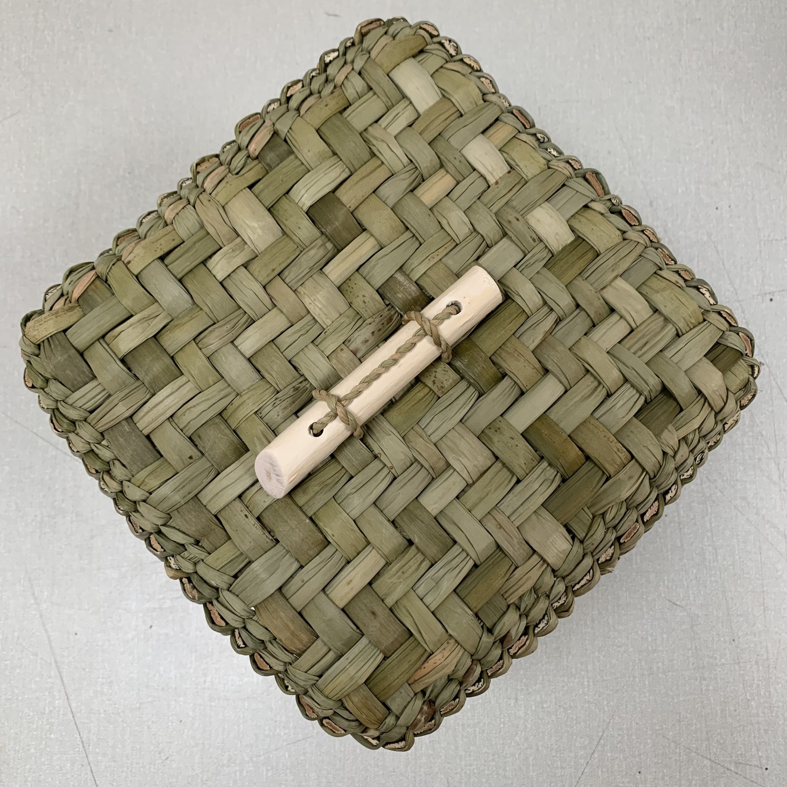 Create a beautifully textured blunt cornered square basket in English rush. Explore the use of twinning techniques over varying numbers of stakes to make striking patterns. The basket and lid use a twill weave, and handles utilise the white willow after the bark has been slipped off. Fine plaits or cordage fasten the handle to the lid, and Nadine will encourage participants to make their baskets unique and individual.