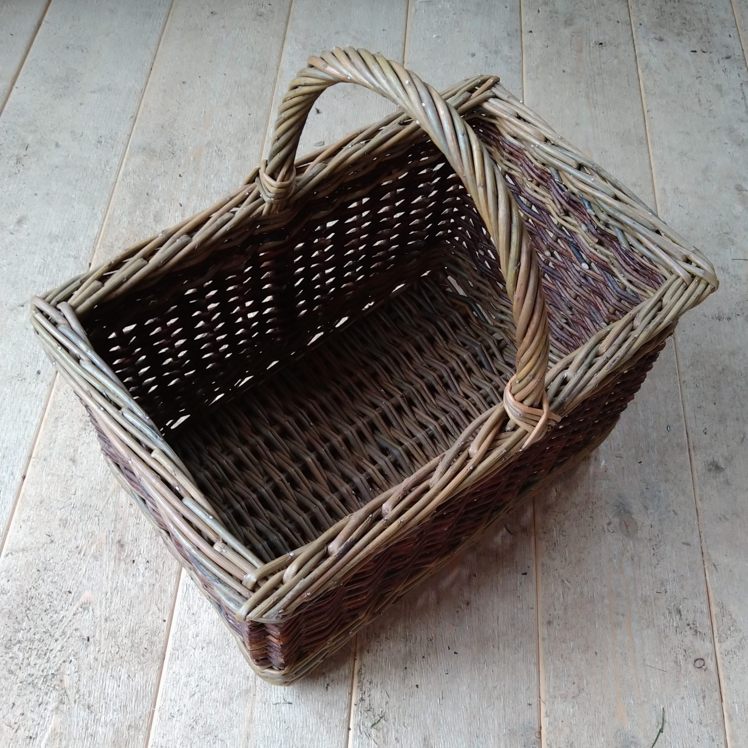 This shopping basket takes on beautiful shapes. It follows the curve of your body on one side and bulges out nicely on the front. This basket is mainly about design. The attractive colours are obtained by the home-grown willow that will be offered. It is expected that you can already handle the basic techniques smoothly so that your focus can be on the attractive shape.